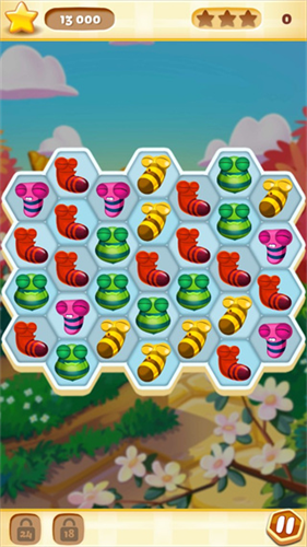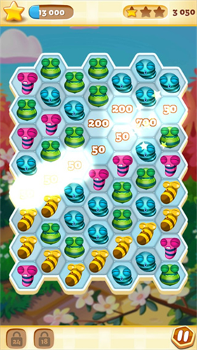 5、游戏操作简单,只需不断点击屏幕,将多个同色蜜蜂连接并消除,释放连击道具。