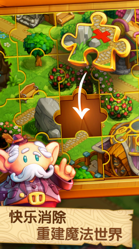 通过经典消除玩法获得拼图碎片,修复被摧毁的大陆,同时还可以收集物品合成心仪的建筑。
