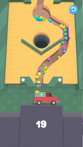1、根据你挖出的隧道,球球会自动跟着隧道掉下来,直至落入货车的车厢当中。