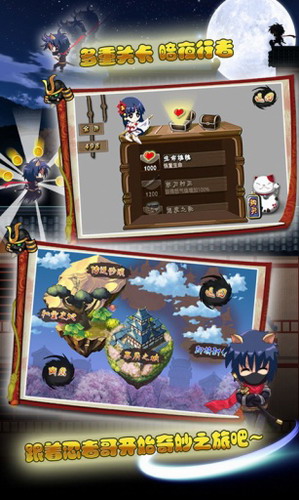 4、进击的忍者2游戏界面清楚,卡通角色造型;