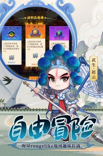 1、酷炫的三国冒险,可以实时切换武将,让玩家可以应对各种战斗场景。