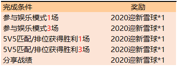 总共可通过新年挑战活动获得2020迎新雪球*5