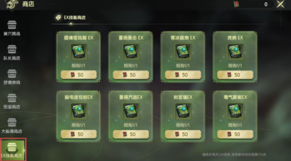 3.左侧列表下滑至底部,点击【EX技能商店】使用【技能书】即可直接兑换