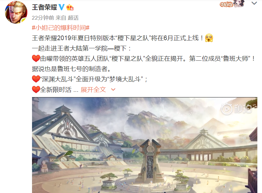 王者荣耀6月新版本更新前瞻 深渊大乱斗将升为梦境大乱斗王者荣耀官方在KPL联赛中预告了6月新版本,很遗憾的是,下一个版本与三国无关,新英雄马超应该不会上线。6月夏日版本命名为“稷下星之队”,名字上就透露了这是一个跟稷下相关的版本,2019-10-19 -