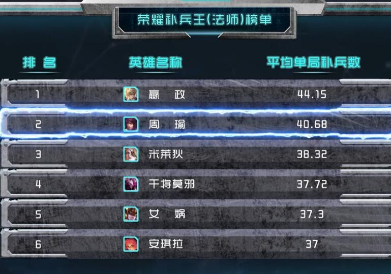 王者荣耀清线最快法师盘点 嬴政稳居第一王者荣耀官方近期公布法师最强补兵王的排行榜,前六名中的法师有一个比较大的共性就是持续输出能力非常强,并且技能冷却快,命中2019-10-19 -