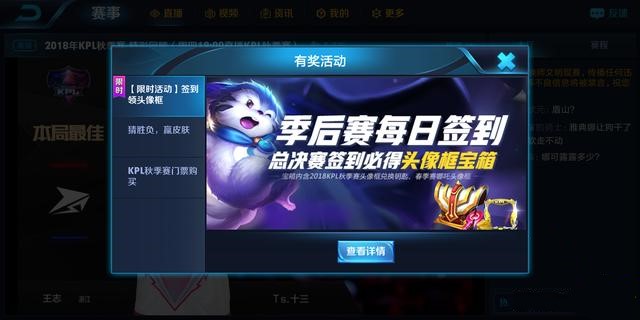 王者荣耀竞猜商店兑换开启 签到必得头像框王者荣耀2018KPL秋季赛季后赛第二周的比赛将于明日(29号)打响,届时西部赛区的JC和YTG两支战队将争夺进入第三轮败者组的资格,相比2019-10-19 -