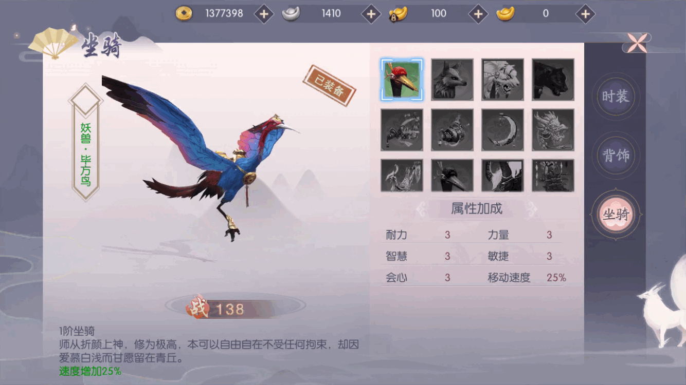 三生三世十里桃花手游毕方鸟怎么获得三生三世十里桃花手游是有坐骑系统的。每种坐骑不光是外表上有所差异,它们自身的属性和给玩家带来的属性加成也是不一样的。而目前,我们能够免费得到的坐骑只有毕方鸟。那么,毕方鸟2019-10-19 -